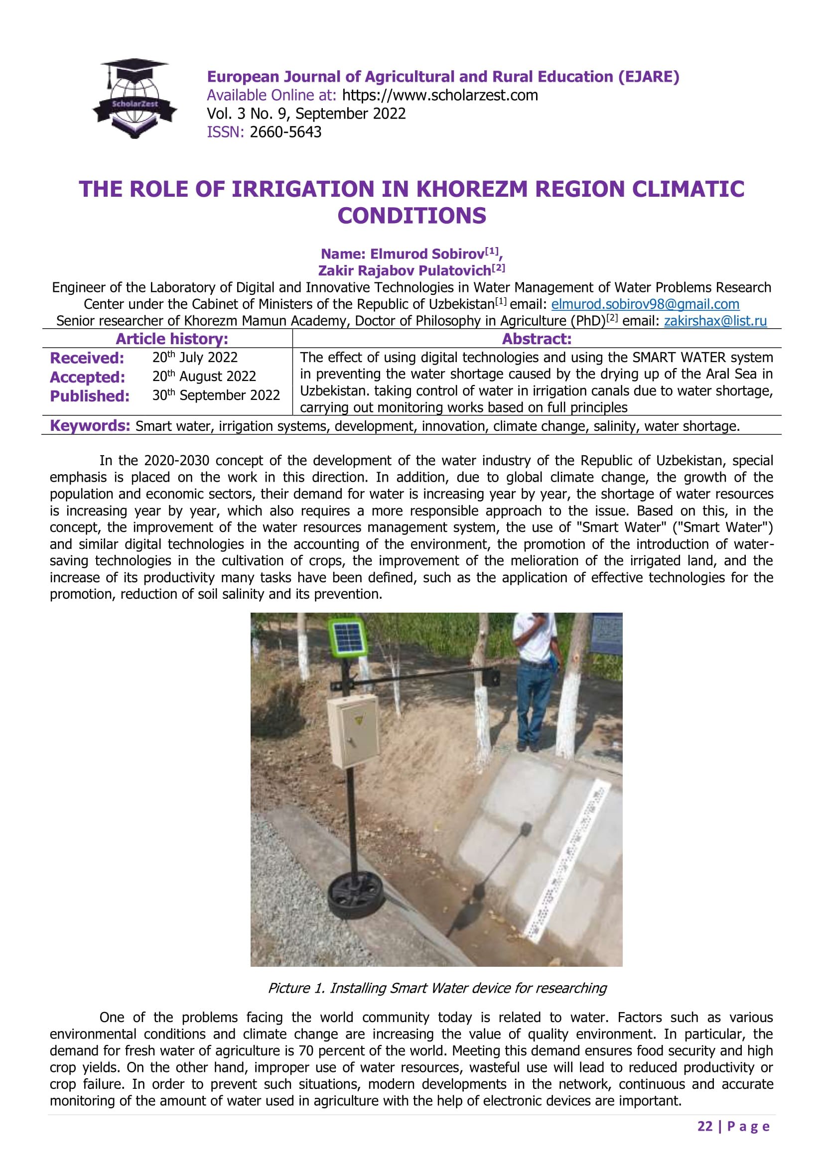 Xorazm iqlim sharoitida sug'orishning o'rni
